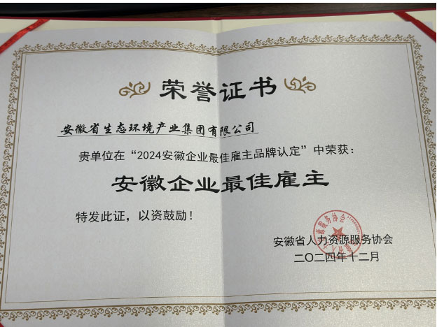 新年伊始,在由安徽省人力資源和社會(huì)保障廳指導(dǎo)、安徽省人力資源服務(wù)協(xié)會(huì)舉辦的“2024安徽企業(yè)最佳雇主品牌認(rèn)定”活動(dòng)中,省生態(tài)環(huán)境集團(tuán)因出色的人力資源管理能力和良好的雇主口碑,榮獲“安徽企業(yè)最佳雇主”。
