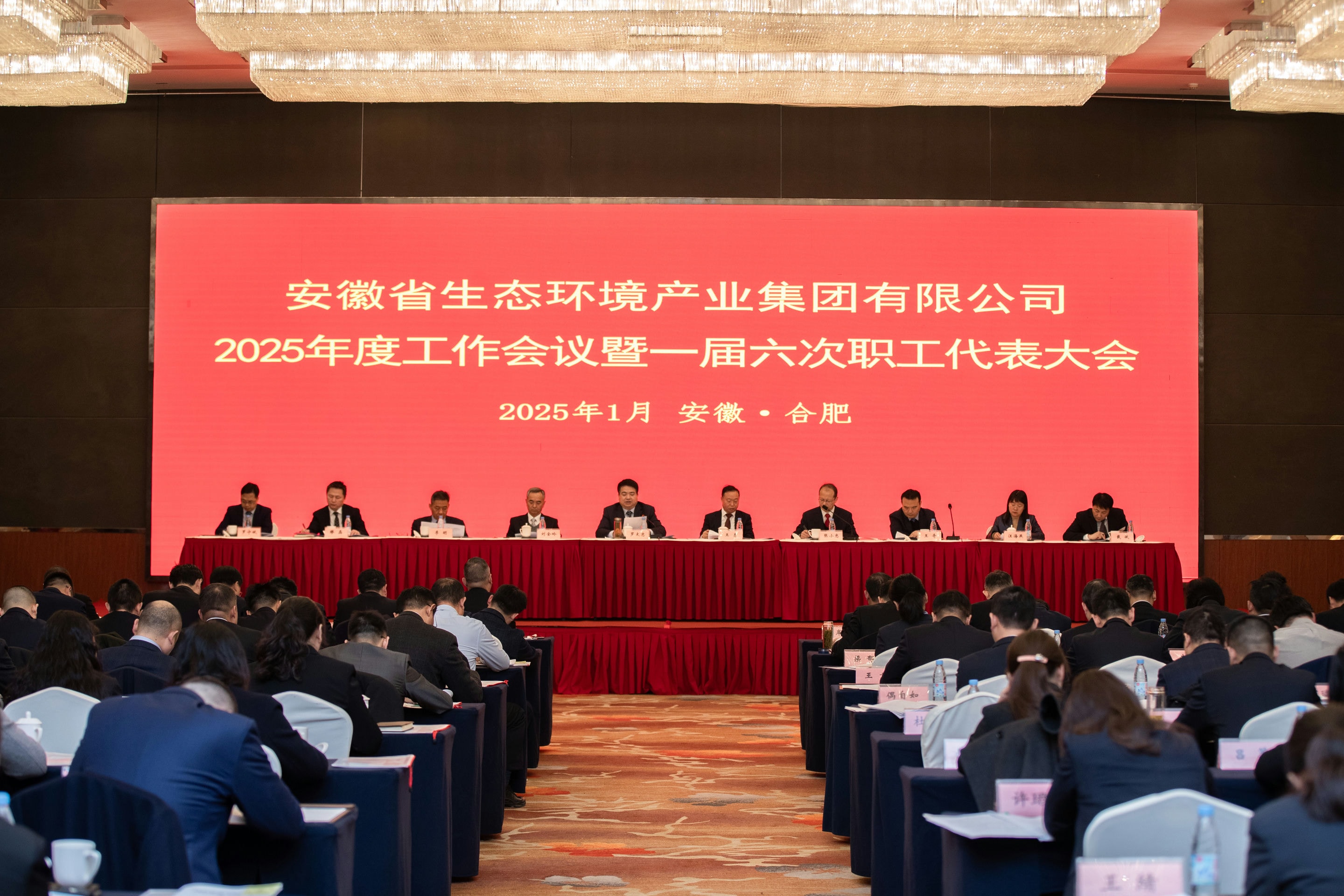 1月21日上午,省生態(tài)環(huán)境集團(tuán)2025年度工作會(huì)議暨一屆六次職工代表大會(huì)在合肥召開。會(huì)議以習(xí)近平新時(shí)代中國特色社會(huì)主義思想為指導(dǎo),深入貫徹黨的二十大、二十屆二中、三中全會(huì)精神,學(xué)習(xí)貫徹習(xí)近平總書記考察安徽重要講話精神,認(rèn)真落實(shí)中央、省委經(jīng)濟(jì)工作會(huì)議以及省屬企業(yè)和市國資委負(fù)責(zé)人會(huì)議精神,總結(jié)工作,分析形勢(shì),部署任務(wù)。集團(tuán)公司黨委書記、董事長羅太忠作題為《服務(wù)全省大局 勇?lián)鷷r(shí)代重任 努力為全面建設(shè)美好安徽貢獻(xiàn)更多力量》工作報(bào)告。