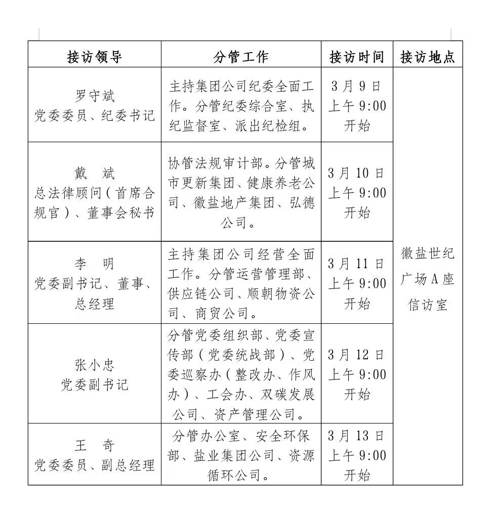 根據(jù)工作安排,現(xiàn)就省生態(tài)環(huán)境集團(tuán)領(lǐng)導(dǎo)班子成員3月份接待群眾來(lái)訪安排公示如下: