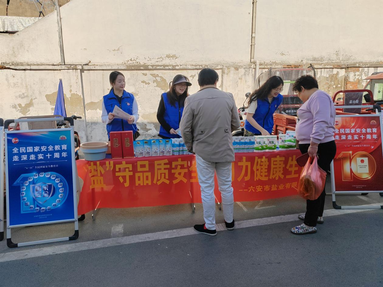 國家安全,人人有責;鹽業(yè)安全,惠及萬家!2025年4月15日是我國第十個“全民國家安全教育日”,為深入貫徹落實總體國家安全觀,增強全民國家安全意識,安徽省六安市鹽業(yè)有限公司積極響應號召,緊緊圍繞“全民國家安全教育 走深走實十周年”主題開展形式多樣的普法宣傳活動,切實推動國家安全理念深入人心。