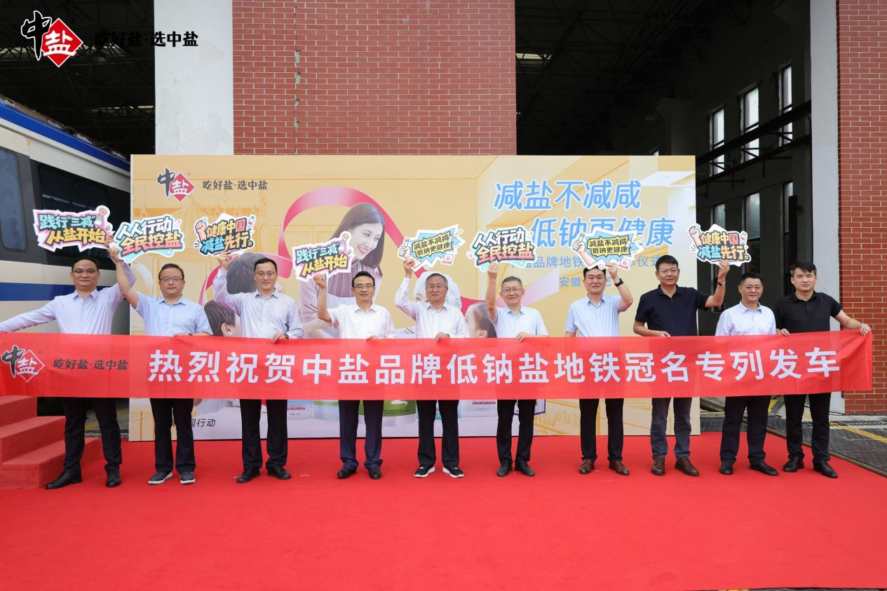 近日,中鹽品牌低鈉鹽地鐵冠名專列首發(fā)儀式于合肥南崗車輛段圓滿舉行。中鹽安徽鹽化集團(tuán)、中鹽東興鹽化公司、省生態(tài)環(huán)境產(chǎn)業(yè)集團(tuán)、省鹽業(yè)集團(tuán)、安徽國(guó)勝大藥房、安徽惠豐國(guó)藥、合肥軌道交通集團(tuán)、金鵑軌道傳媒公司等單位負(fù)責(zé)人及代表出席活動(dòng),共同見(jiàn)證中鹽品牌地鐵專列正式啟程。